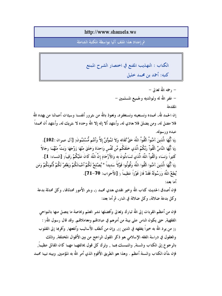الشرح الممتع على زاد المستقنع الموقع الرسمي للمكتبة الشاملة