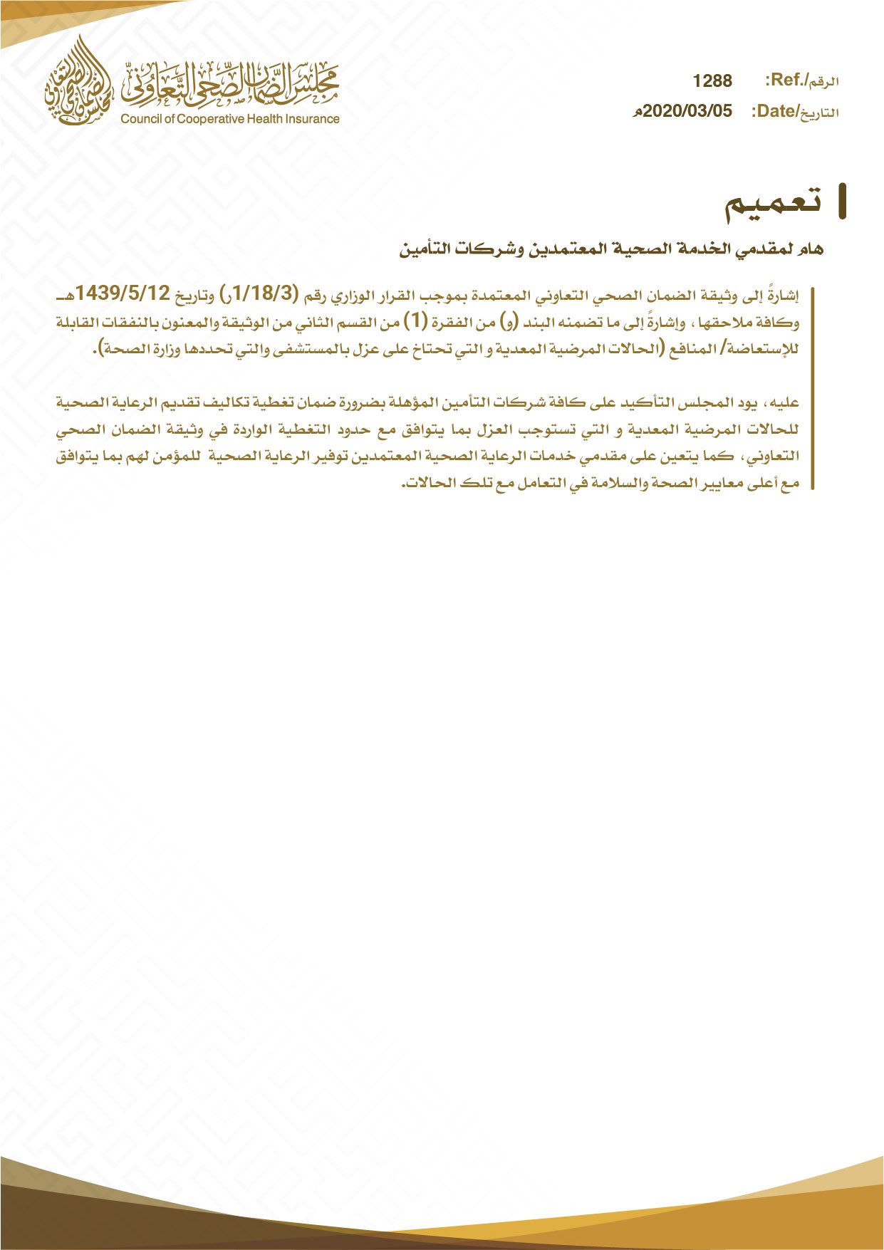 مـ جـ لـ س ا لـ ضـ مـ ان الصحي On Twitter أصدر مجلس الضمان الصحي تعميما هاما لمقدمي الخدمة الصحية المعتمدين وشركات التأمين أن وثيقة التأمين الصحي تشتمل على تغطية كافة الحالات المرضية