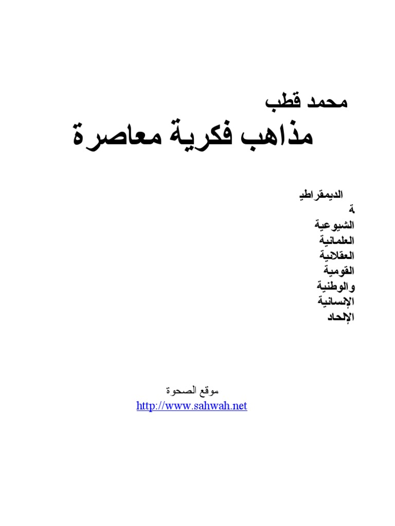 مذاهب فكرية معاصرة محمد قطب. المؤلف كتاب مذاهب فكرية معاصرة العلمانية والمؤلف لـ 52 كتب أخرى. المذاهب الفكرية المنتشرة وأسباب نشأتها وتشكلها مثل الشيوعية والديموقراطية والعلمانية والعقلانية والقومية والإنسانية والإلحاد مع تطبيقاتها فى السياسة والأخلاق. محمد قطب رحمه الله الكتاب يتكلم عن نقد المذاهب الباطلة. مذاهب فكرية معاصرة book.