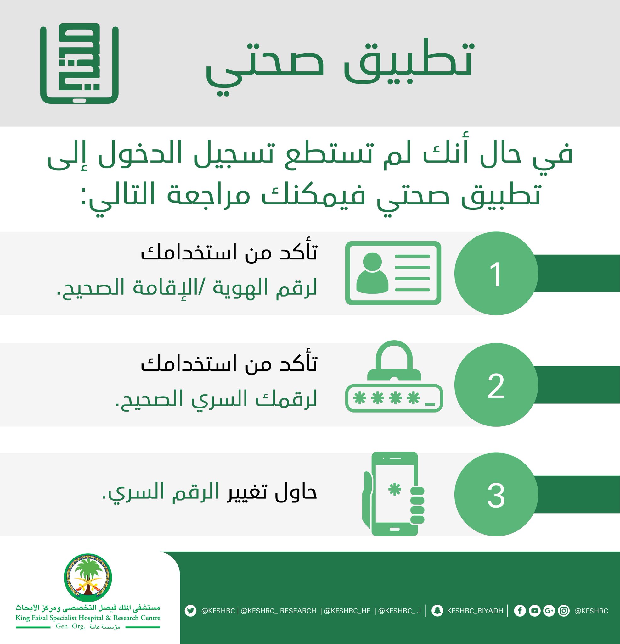 مستشفى الملك فيصل ا لـ تـ خـ صـ صـ ي بالرياض Di Twitter في حال أنك لم تستطع تسجيل الدخول إلى تطبيق صحتي فيمكنك مراجعة التالي أنفوجرافيك