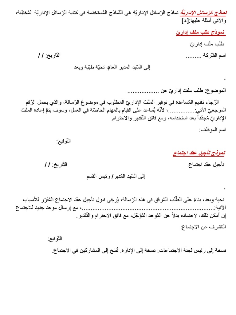 نماذج الر سائل الإداري ة نماذج الر سائل الإداري ة هي الن ماذج الم ستخد مة في كتابة الر سائل الإداري ة الم ختل فة Docx
