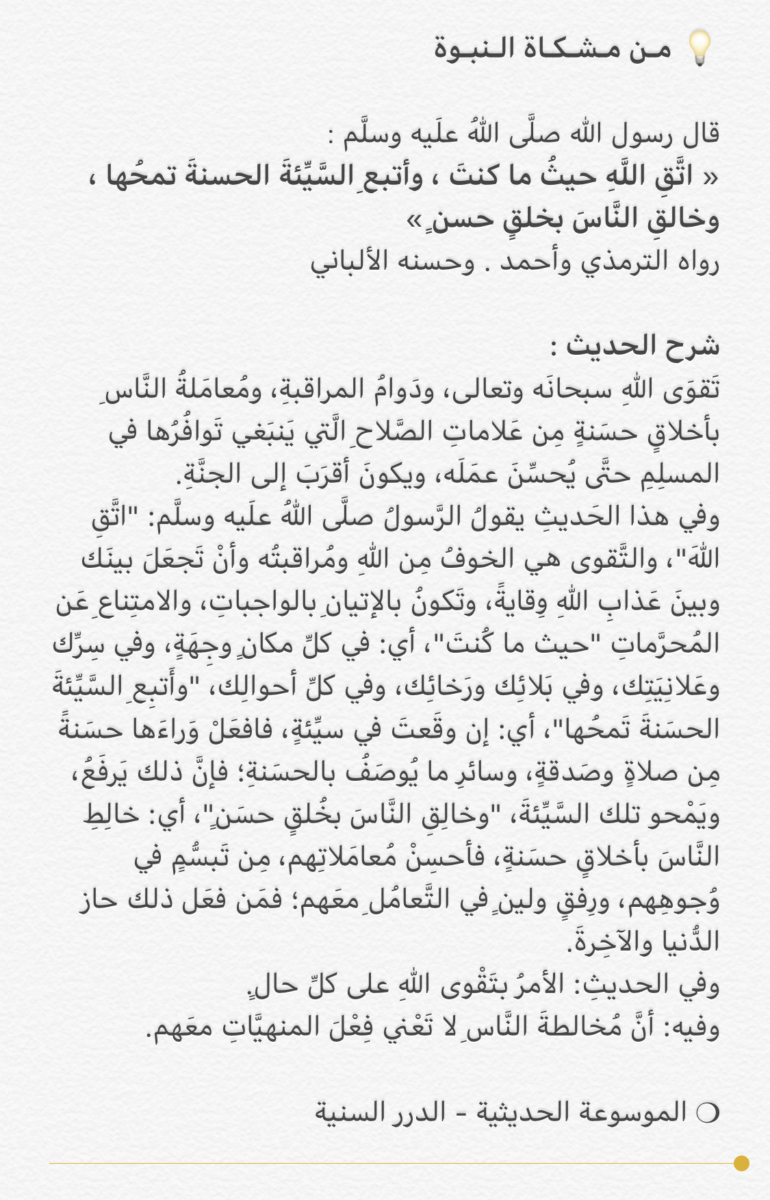 الروائع الدعوية On Twitter مـن مـشـكـاة الـنبـوة قال رسول الله صل ى الله عل يه وسل م ات ق الل ه حيث ما كنت وأتبع الس ي ئة الحسنة تمح ها وخالق الن اس بخلق حسن
